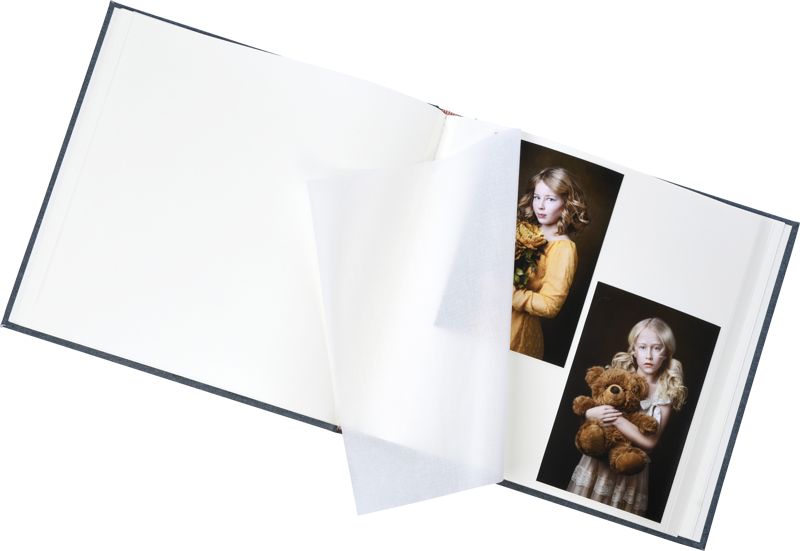 Vönduð myndaalbúm með taukápu með tómum blaðsíðum og milliblöðum.