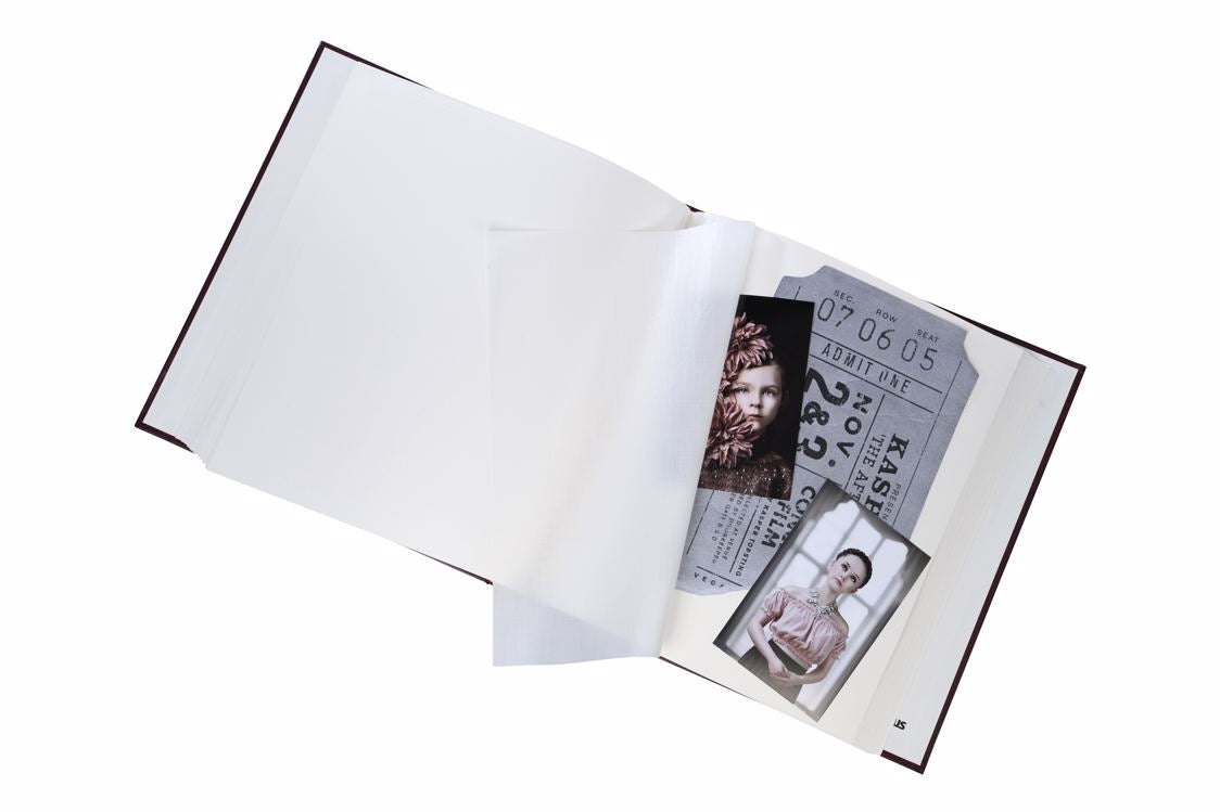 Myndaalbúm með kúptum kili. Með tómum blaðsíðum sem hægt er að líma myndir á.